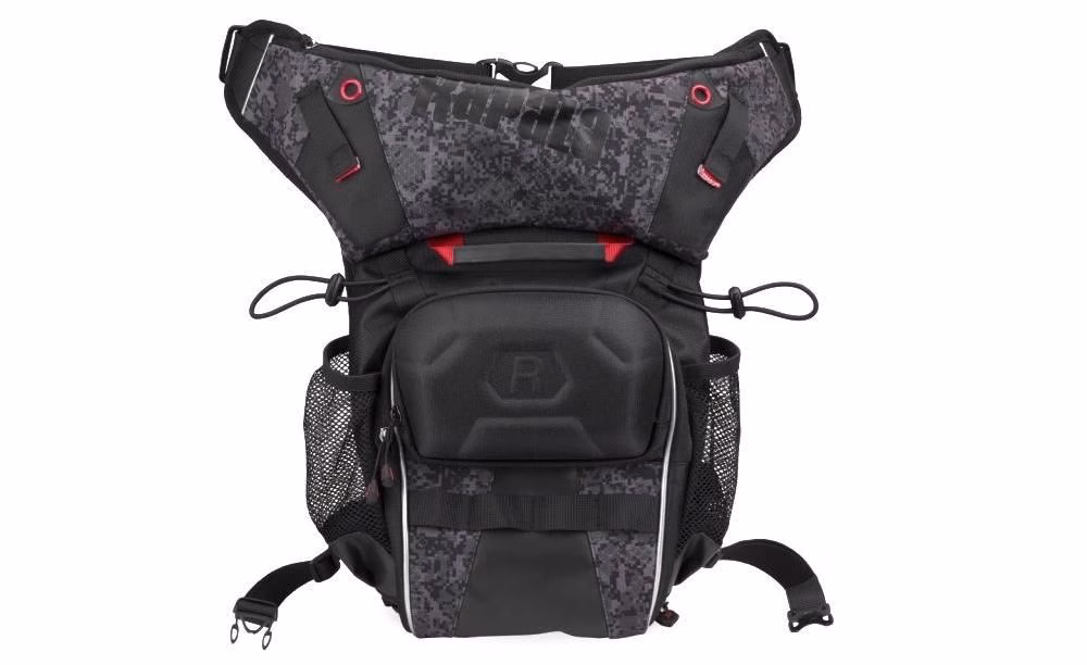Rapala's new fishing bag to wear on the hip, perfect for organizing your tackle. The main compartment accommodates a size 3500 box Convenient pockets for pliers EVA hard case pocket for sunglasses Rod holder system on both sides Ventilated 3D mesh in the back
