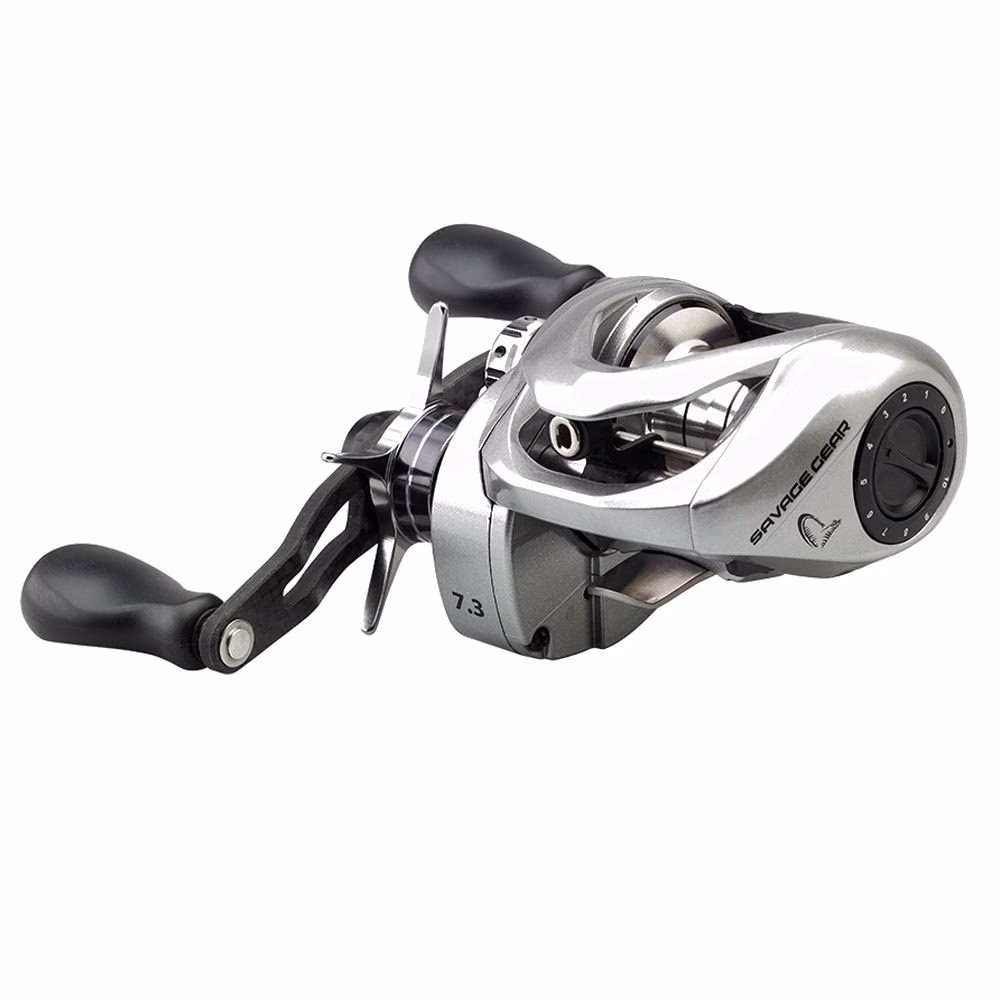 Representing the very best of Savage Gear technology and innovation, the Savage Gear SG10 baitcasting reel is now available and also loaded with smart ideas to help you achieve your angling goals. Besides the obvious impressive features, such as 9+1 stainless steel ball bearings, a machined gear, DuraGrease and a super strong and rigid aluminium body and side plate, the real standout highlight is the external centrifugal brake. This brake results in easier casting and playing fish, increased casting distance, a reduction in knots and tangles and less trouble when casting in strong crosswinds. Once you try the SG10, you’ll never look back.