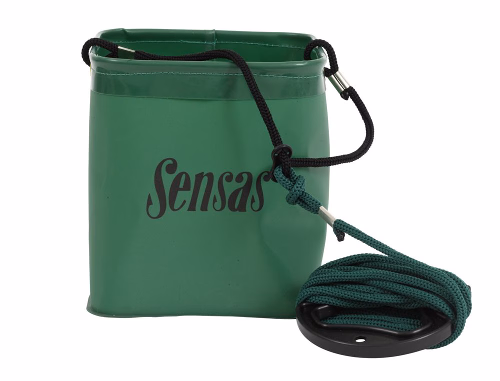 SENSAS WATERPROOF BUCKET + ROPE, Handy flexible bucket on a rope that is great when you need to get water up a steep bank. Folds away for easy storage.