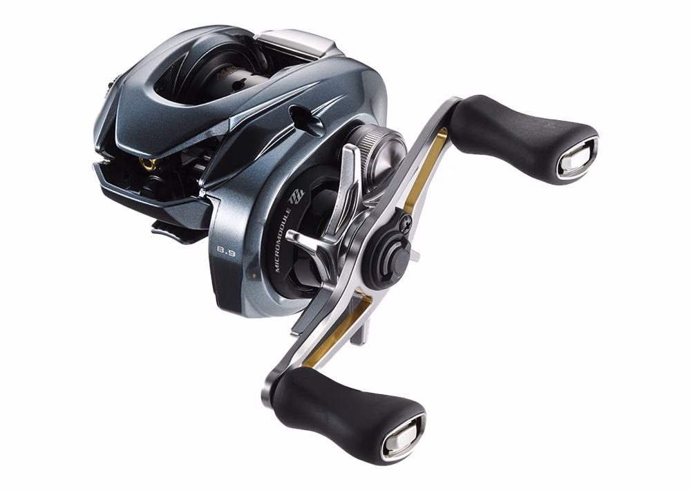 The Aldebaran BFS is Shimano's most advanced ultra finesse baitcasting reel. Designed for the very lightest fishing lure, this lightweight, technically brilliant reel can work with lures as light as 1g. If you are a lightweight lure specialist who likes to fish with finesse type lure, or for smaller species like trout and perch, you'll love the Aldebaran BFS. Even anglers who have previously only used spinning reels for their ultra finesse fishing will instantly appreciate the benefits of this model. A quick flick of the rod tip will launch the lightest lures into almost friction-free flight. And if conditions change, or you choose a different weight lure, a quick adjustment of the breaking dial means you always have the perfect brake setting. The remarkable lightweight casting performance of Aldebaran BFS is provided by the FTB (Finesse Tune Braking) system. This is a combination of magnets and centrifugal force braking which works in harmony with the ultra-light MGL III spool to control breaking. The addition of S3D spool design and SilentTune technology further enhances performance. Adjusted by an external dial, when set in its lowest setting, brake friction is almost imperceptible. But there is much more to the Aldebaran BFS than its remarkable casting performance. Internally Micromodule Gear and X-SHIP deliver smooth, powerful, efficient winding power and the overall weight is reduced by using a HAGANE Body comprising magnesium and CI4+ materials. ) or 8.9:1 (XGL) models, both of which are fitted with Shimano's Exciting Drag Sound to enhance fish playing.