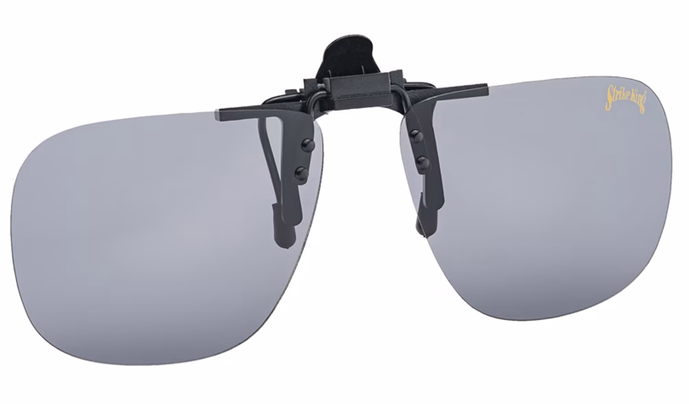 Strike King Polarized Clip-On Sunglasses. Polarized visor lenses that are worn over prescription glasses for anglers who wear glasses with prescription lenses. These polarized clip-on fishing lenses are easily installed on your glasses and protect from sunlight, defining the shadows of the fish.