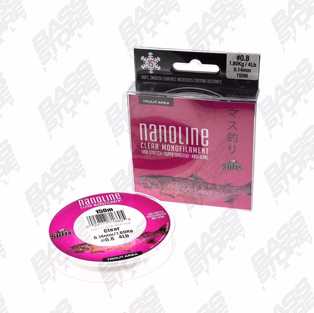 Sufix Nanolines. The Sufix Nanoline line is a new addition to the Sufix fishing line catalog aimed at light game. In particular, the characteristic that makes this nylon spinning line very particular is the special treatment to which the line is subjected which guarantees optimal sealing even at very low temperatures. The peculiar characteristics of Sufix Nanoline trout area game nylon are not affected by cold temperatures down to -15°. This makes it a perfect nylon for the colder season!
