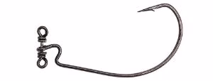 VMC Spinshot Wide Gap Hook, revolutionary drop shot hooks designed for Texas and wide gap hookbaits. They allow you to bait larger baits than traditional small drop shot ones, and have a high anti-tangle efficiency. They eliminate annoying wire spirals thanks to the swivel.