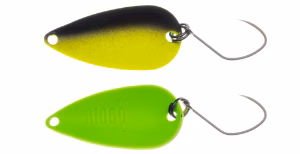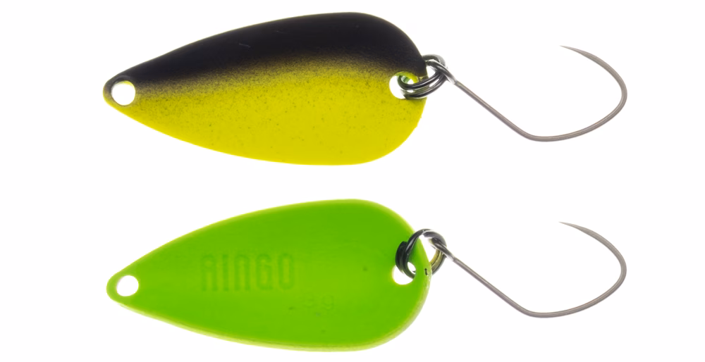 Yarie Ringò Winner Color. The edition with the most contrasting and extreme color schemes of the Yarie Ringò trout area game undulating spoons: the Yarie spoon for searching for trout in depth par excellence, designed and engineered specifically to reduce the rise to the limit during recovery and therefore maintain the right depth, suitable for passing the bait over the trout water line. The choices of colours, combined with clear chromatic changes, serve to provoke the trout who have seen everything, and who are pushed to attack only if provoked, or with lively and unlikely presentations animated in an expert way. Like all Yarie reels they are supplied with single chemically sharpened barbless hooks. Made in Japan.