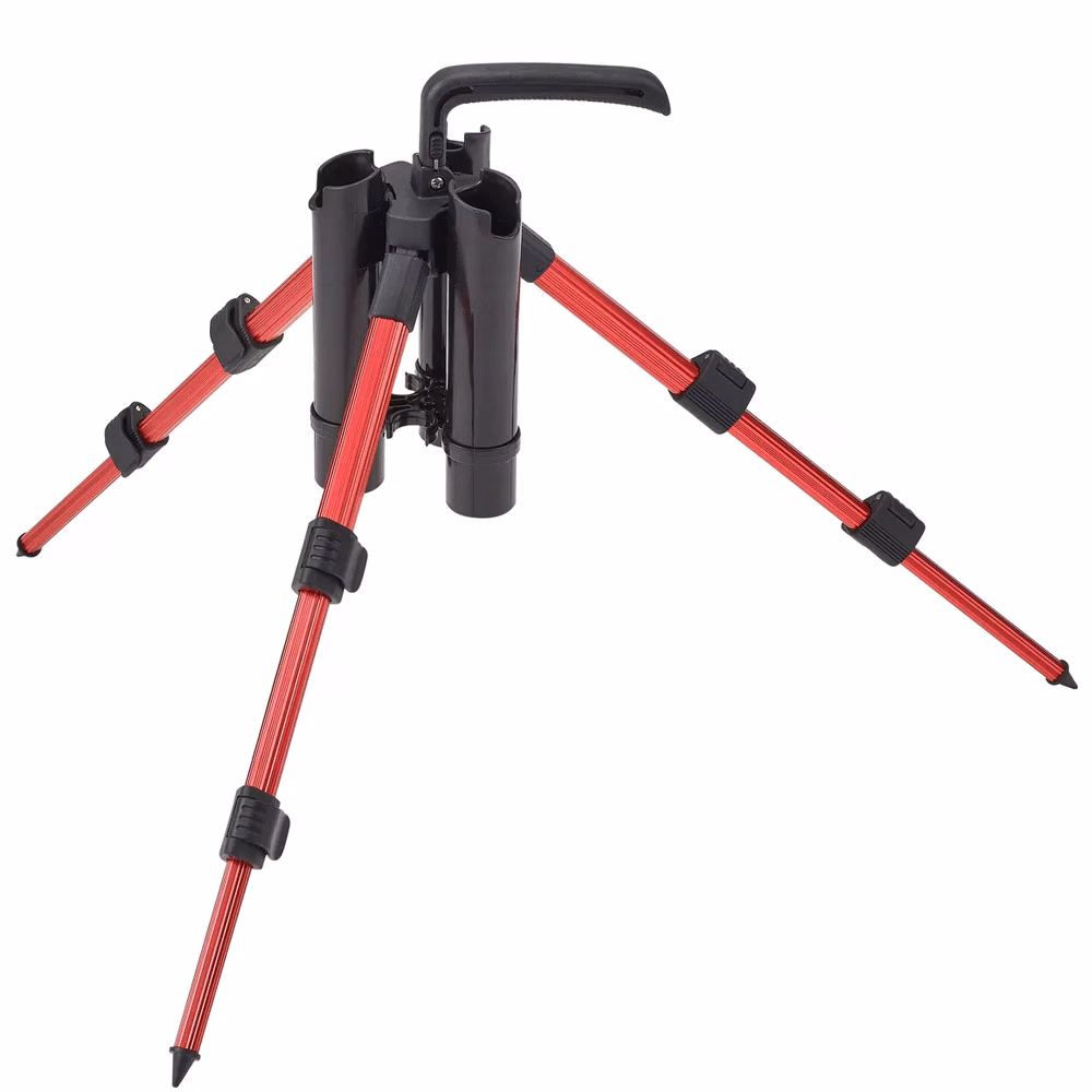 El portacañas Balzer Spoon para cañas de pescar 'area trout' permite tener a mano tres cañas de spinning montadas y listas para usar. Las tres patas telescópicas ajustables permiten adaptarlo a cualquier superficie. Este portacañas trípode para pesca deportiva en zona de truchas es ultraligero y dispone de una práctica asa para facilitar su transporte y colocación en el estanque.