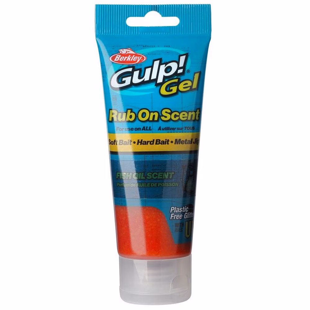 Berkley Gulp Gel Rub On Scent UV. Basado en la fórmula probada y fiable de Gulp! Gel contiene el sabor definitivo que provoca la picada de los peces, perfeccionado a lo largo de 30 años de investigación y desarrollo continuos de estimulantes de la alimentación de los peces por parte de Berkley. ¡Para satisfacer la demanda de Gulp! Gel, Berkley presenta este año un tubo más grande de 80 ml para que tenga más cantidad de la fórmula secreta para aplicar a cebos blandos, duros o metálicos. El tubo de 80 ml también cuenta con un punto de conexión de cordón para colgarlo en el barco o alrededor de su cuello para la reaplicación práctica a los cebos. Para estilos de pesca en agua dulce y salada con efecto UV.