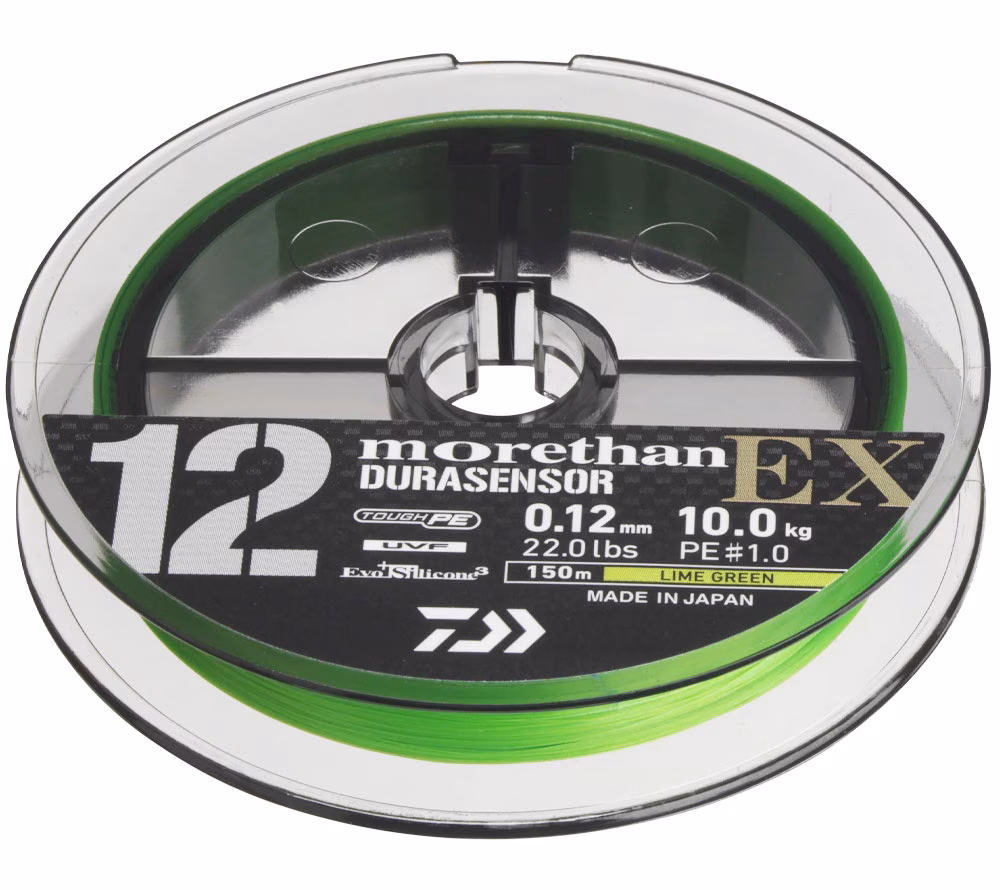 Quieres un hilo trenzado específico para la pesca de la lubina? El nuevo supertrenzado Daiwa Morethan ×12EX + Si³ lleva la fiabilidad a un nivel superior gracias a un bobinado con un hilado compacto de 12 hilos de TOUGH PE, que ofrece una redondez impecable y una cohesión extraordinaria para una resistencia superior a la tracción y un deslizamiento fluido sobre los anillos de las cañas de pescar. El tratamiento superficial Si³ (Silicone³) reduce la fricción de este hilo Pe Daiwa en los anillos y las presillas, mejorando la lanzabilidad incluso con señuelos artificiales ligeros o jerkbaits de pequeño tamaño, perfectos para la pesca de la lubina. La combinación de la estructura ×12 con el tratamiento EVO Silicone² garantiza una resistencia a la abrasión hasta un 300 % superior a la de los PE estándar de Daiwa, mientras que su compacidad y reducida elasticidad permiten percibir incluso las picadas más tímidas con una precisión milimétrica. Su color verde lima con marcas de colores mejora el control visual de este nuevo hilo trenzado Daiwa Morethan ×12EX + Si³.