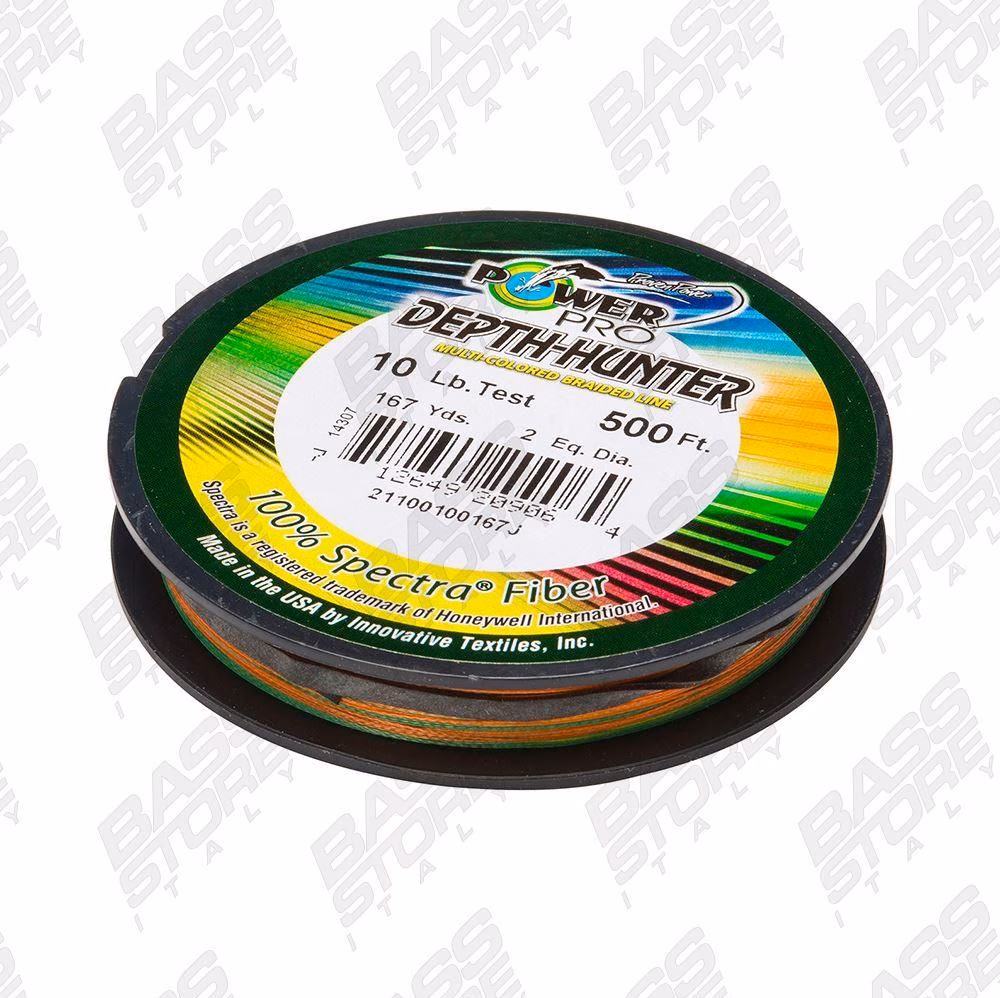 Línea trenzada Power Pro Depth-Hunter . Para señuelos trollers, jiggers y lanzadores, la trenza Power Pro Depth Hunter cambia de color de azul a amarillo, de verde a naranja y tiene una marca negra cada cinco pies. Esto ayuda a realizar una colocación de señuelos súper precisa, logrando que múltiples señuelos o plantillas regresen repetidamente a la zona de impacto sin enredos ni enganchones.