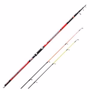 Caña de pesca Ferrari Pro Beach Ledger 420. Caña beach ledgering de alta relación calidad-precio, con blank de carbono: el hecho de ser telescópica la hace práctica y cómoda. Equipada con guías Marine SIC y portacarretes de rosca de gran fiabilidad. La caña Beach Ledgering Pro Beach Ledger 420, también es adecuada para surfcasting ligero, y está equipada con 2 puntas intercambiables que se pueden montar según las necesidades de pesca, una con acción de hasta 80 gramos y la otra con acción de hasta 120