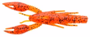 Yamamoto Psycho Dad. Este señuelo Yamamoto de 3 3/4" tiene unas enormes pinzas redondas que parecen remar al recoger el cebo. También es el único crawdad con una cámara "rattle" incorporada. También tiene un refuerzo extra de plástico en su "cola" que lo sostiene en los nuevos anzuelos bait-keeper de caña recta. El Yamamoto Psycho Dad tiene un montaje de pie que imita la clásica postura defensiva de una gamba cuando es presa de un pez. Ideal para ned-rig, texas-rig, neko o usado como trailer-bait en jigs.