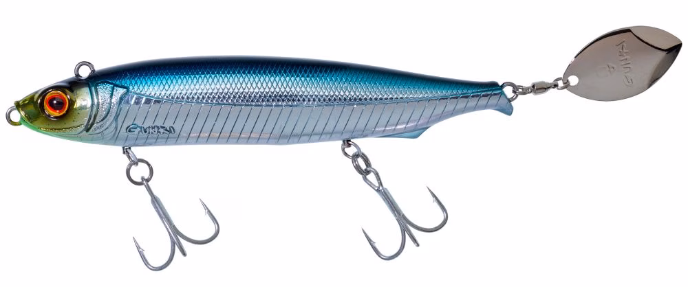 El Gunki DRAG SPIN es un señuelo tipo "PENCIL BAIT" de hundimiento lento que puede pescarse muy cerca de la superficie. Ideal para pescar sobre lechos de algas o en aguas poco profundas como las colas de los lagos. Este señuelo Gunki tiene una velocidad de hundimiento lenta y se mantiene plano en el descenso: esto le da tiempo para iniciar su recuperación sin que el señuelo quede atrapado en las malas hierbas. Se pesca mejor con recuperaciones rectas a distintas velocidades. El señuelo tiene dos ojos de nudo. El de la boca mantiene el señuelo alto en el agua, perfecto para recuperaciones ultralentas pero igualmente bueno para recuperaciones muy rápidas. El otro nudo en la parte delantera de la cabeza mantiene el señuelo mejor en profundidad. La ventaja del sistema de dos enganches es que puedes cambiar rápidamente de una recogida muy superficial a una más profunda simplemente cambiando el punto de enganche y enganchando un plomo. Para conseguir un efecto de clavado más exagerado, prueba a enganchar el lastre a la anilla delantera. El señuelo Gunki Drag está indicado para la pesca del lucio y el black-bass.