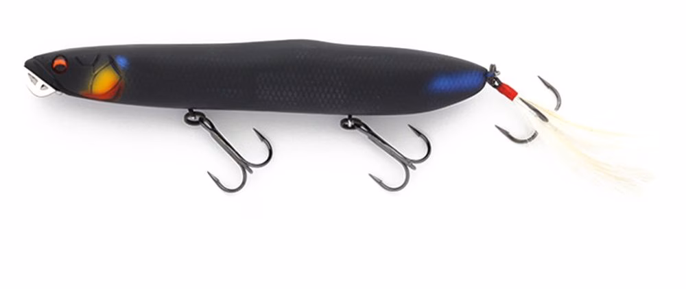 Imakatsu Iron Mouth. The characteristic of the IRON MOUTH is its super long casting ability, even in a headwind, and its crisp and fast dogwalk action with a splash that makes you think the bait fish are being driven to the surface.