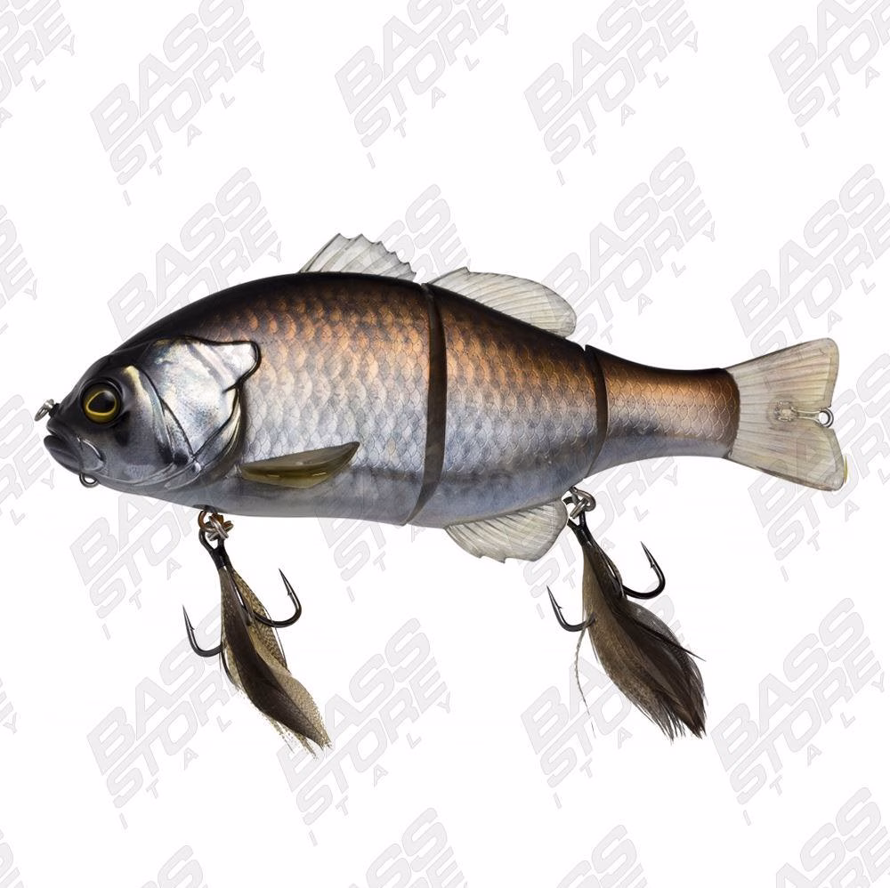 Jackall Bros Gigantarel. El GIGANTAREL es el más grande de la línea de señuelos Gantarel. En los últimos años, se han capturado peces grandes con señuelos de 8 pulgadas o más. Estos señuelos, como las agallas azules adultas y la carpa, existen en diversas aguas. La realización de un "GIGANTAREL" era inevitable. El movimiento natural creado por las tres articulaciones desencadena instintos depredadores monstruosos en los bajos. Al igual que su versión más pequeña, se puede girar 180 grados, lo que crea una reacción de mordida. Usando el GIGANTAREL, seguramente captará un gran bajo. Sentirás una gratificación instantánea cuando utilices el GIGANTAREL y captures un pez grande. ¡Acepta el desafío de atrapar una lubina gigante con el swimbait GIGANTAREL!