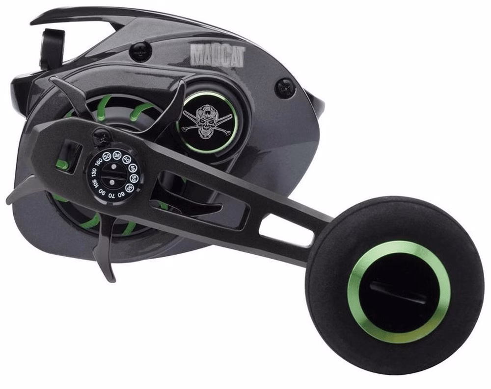 Los carretes de lanzado para pesca de siluro MADCAT DOMINION están fabricados pensando en la máxima resistencia, y no piense que carecen de todas las características técnicas necesarias para que su próxima aventura de pesca de siluro sea un éxito. El carrete de baitcasting Madcat Dominion Low Profile es ligero y cómodo en tamaño 400, lo que lo hace ideal para técnicas de pesca vertical desde barca o embarcación cuando se utilizan señuelos de plástico blando, cebo vivo natural o MADCAT clonk teasers. Fabricados con un cuerpo de aluminio superresistente pero ligero y tapas laterales rígidas de carbono, los carretes de lanzado Madcat Dominion no se hunden bajo presión. También están equipados con arandelas de embrague de carbono multidisco que literalmente paran a los peces en seco porque el embrague es muy potente. El sistema de enrollado del sedal es perfecto y permiten dos longitudes de manivela diferentes según el escenario de pesca.