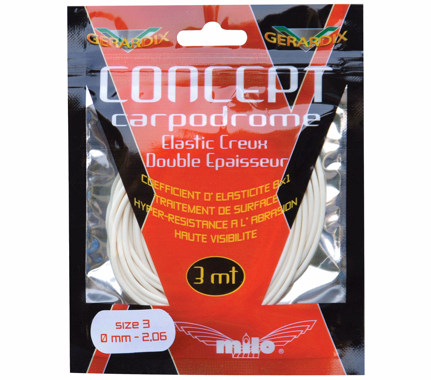 Elástico para cañas enchufables de carpódromo Milo Concept. Especialmente diseñado para la pesca de match-fishing y grandes carpas en lagos, este elástico hueco recubierto de silicona de doble capa tiene un factor de elongación de 1:8 y excelentes propiedades de recuperación. Ofrece una excepcional resistencia a la abrasión y es muy visible, lo que facilita el seguimiento de cada movimiento del pez cebado. El elástico Milo Concept Carpodrome, que forma parte de la línea de productos Milo Gerardix, le permitirá enfrentarse con facilidad a las situaciones más extremas, incluso a los peces más combativos. Lo que parecía imposible se ha hecho realidad con los elásticos Concept Carpodrome. Se venden en envases herméticos con cremallera para no alterar las propiedades del elástico.