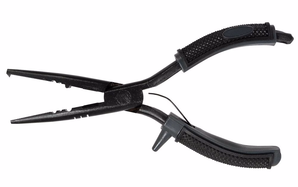 MIlo Long Nose Plier. Pinza apri anelli da “VJ”, maneggevole, inattaccabile dalla corrosione, con impugnatura antiscivolo. Funzionale, in questa tecnica di pesca è indispensabile per aprire facilmente, senza danneggiarli, gli split rings.