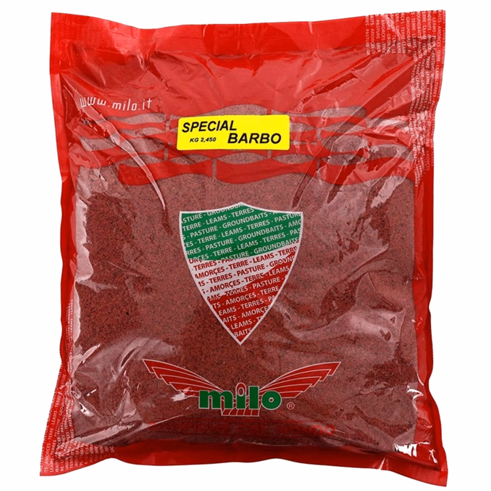 El engodo rojo Milo Special Barbo es un engodo legendario en toda Europa. Puede utilizarse tanto para la pesca con caña como para la «pesca con alimentador». Se trata de un engodo pegajoso de color rojizo a base de harina de queso, que lo hace atractivo dependiendo de la cantidad de agua que se añada y de lo fuerte que se apriete con las manos, para la pesca en ríos con fuerte corriente y/o en aguas profundas. Gracias a las atractivas partículas de harina de queso que contiene, el olor y el sabor son fuertes y permanecen intensos en el fondo durante horas.