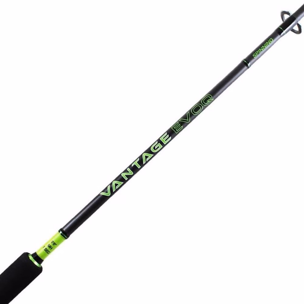 Cañas de spinning Mustad Vantage Evoq. Verdadero caballo de batalla polivalente, esta gama de cañas de pescar Mustad se ha desarrollado con un objetivo principal: ser una herramienta de pesca eficaz y fiable, sea cual sea la situación. En esta gama hay múltiples opciones disponibles, tanto para la pesca en agua salada como en agua dulce, para adaptarse a la mayoría de las técnicas modernas de pesca con señuelos y para trabajar adecuadamente cualquier tipo de señuelo. Con cómodo calcetín para la caña.