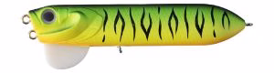 El OSP Yamato tiene tres concavidades frontales, una mandíbula inferior alargada y dos ojales. Esta extraña forma caracteriza lo artificial y lo predispone a todas las acciones. Así nació Yamato wtd, que desarrolló y creó un lápiz popper de una nueva categoría entre los cebos OSP, que tiene varios modos de uso. Generalmente, los lápiz poppers tienen un cuerpo delgado y, generalmente, el tamaño de las concavidades es pequeño. Gracias a esto, los señuelos tradicionales tienen ventajas en cuanto al movimiento de 'paseo del perro' y reproducen un sonido de caza, pero tienen enormes desventajas a la hora de encontrar y atraer peces en grandes superficies. Además de esto, el Yamato extiende el área de su movimiento desde la superficie hasta las capas de agua que se encuentran debajo, dependiendo del modo de uso. El resultado es que hoy por fin es posible atraer graves desde grandes superficies y en cualquier condición, gracias al Yamato. Cuando los graves están activos en la superficie, se utiliza el ojal inferior llamado “ojo de alto atractivo”. Gracias a este ángulo agudo, el timón central hace que el cebo realice un movimiento de paseo del perro muy sinuoso y amplio.