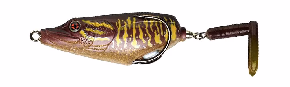 Sakura Bubble Frog es una rana antienganches para la pesca de lubina y lucio con un cuerpo hueco muy suave y una cola de pala de PVC flexible giratoria que genera turbulencias en la superficie. Es una rana indispensable para pescar en zonas con densa vegetación sumergida, de hecho pasa muy fácilmente entre nenúfares, carrizales y ramas, emitiendo continuamente una notable cantidad de vibraciones gracias a la suave cola de pala de PVC unida al cuerpo con una robusta Gira para no sufrir daños incluso bajo los ataques más violentos del black bass o del lucio. En el vientre está equipado con una pequeña válvula que expulsa el aire al apretar y hace mucho más efectivo el golpe en el paladar de la boquilla. Armado con un anzuelo doble muy robusto y de altísima penetración.