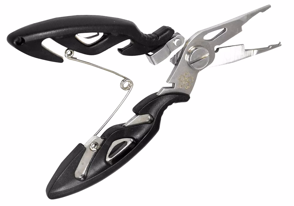 Sakura Mini Split Ring Pliers. La pince Sakura Mini Split Rings Pliers est un modèle à becs très fins, conçu pour le remplacement des anneaux brisés. C’est l’outil indispensable pour changer les hameçons sur un leurre. Sa construction lui permet également de couvrir de multiples usages tel que : fermer les sleeves, couper le fil, décrocher les hameçons, etc. La pince Mini Split Rings Pliers est construite en acier inoxydable forgé à haute teneur en carbone pour une résistance et une rigidité maximale, et dispose d’un revêtement de surface anticorrosion qui lui assure une bonne résistance à la rouille. La pince Mini Split Rings Pliers dispose d’un ressort d’ouverture automatique et d’un loquet de verrouillage, et est doté de poignées ergonomiques en caoutchouc pour vous assurer une meilleure prise en main.