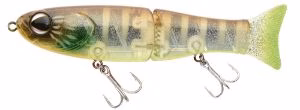 Sakura S-Shiner 190 S / 170 s swimbait. El Sakura S-Shiner, fabricado en dos tamaños 190S y 170S de 19 cm y 17 cm, es un swimbait extra seductor con efecto planeo (movimiento serpenteante izquierda/derecha) para la pesca del lucio y el black bass. Este swimbait, articulado en 2 secciones unidas por una robusta bisagra doble, tiene una seductora forma de "S". Su equilibrio perfecto y su diseño único lo hacen muy fácil de poner en acción. El S-Shiner inicia su slalom desde la primera vuelta de manivela. De hecho, inicia una trayectoria de perezosos zigzags, que resulta muy tentadora. En cuanto se sacude como se haría con un jerkbait, el S-Shiner producirá una acción "side by side" produciendo amplios espacios alternos, de derecha a izquierda, con una amplitud definida por la fuerza del rippin' impresa por la caña. Recomendado para black bass y lucios. Montaje de hundimiento lento.