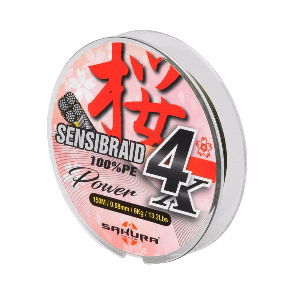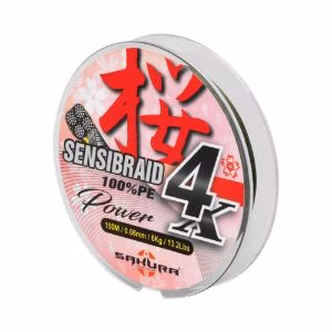 Trenza para spinning Sakura Sensibraid 4x de 4 cabos fabricada con fibras de polietileno (PE) 'Nippon SUPER PE' de alto módulo trenzadas en un proceso 'Micro Pitch' ultraestrecho de 32 cruces por pulgada. Gracias a esta tecnología, el trenzado Sakura Sensibraid 4x tiene una gran resistencia a la abrasión, baja fricción en las anillas de la caña, lo que se traduce en lances más largos y una gran capacidad de retención del nudo. Garantiza un virado rapidísimo gracias a su nula elongación. Además, el trenzado Sakura Sensibraid 4x de 4 cabos tiene un revestimiento exclusivo «Velvet Glove» que le confiere no sólo un poder de retención del nudo aterradoramente alto, sino también una suavidad sensacional buscada por los pescadores deportivos de mar y agua dulce. Este sedal trenzado tiene un precio extraordinario en relación con sus prestaciones y se recomienda no sólo para spinning en cualquier tipo de entorno, sino también para técnicas verticales.