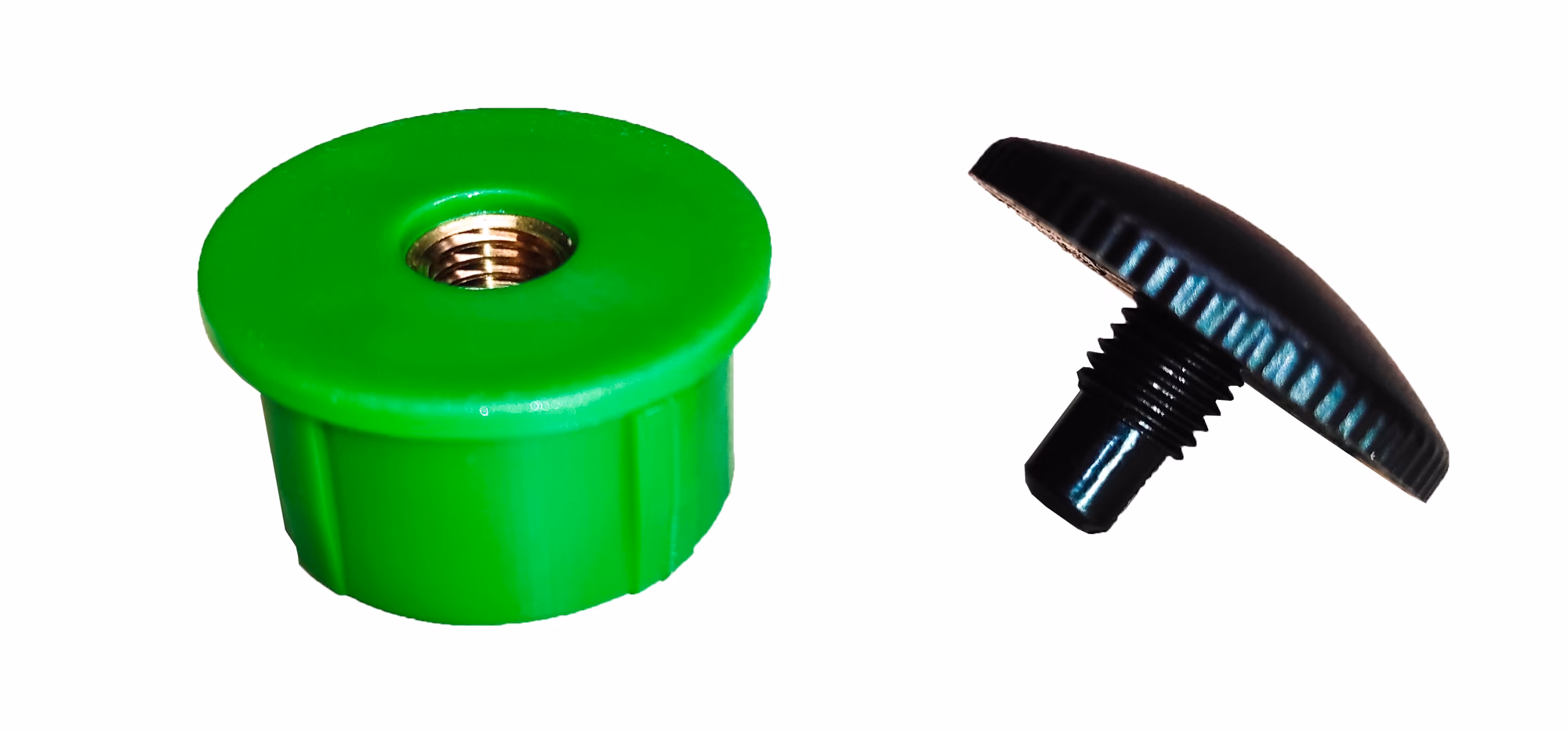 ROSCA DE TORNILLO PATAS ESPECIALES Pequeña y práctica herramienta para ajustar la configuración de su baúl. Aquí podrás atornillar cualquier accesorio, soporte o paraguas de cebo. Disponible en modelos de 25 y 36 mm.