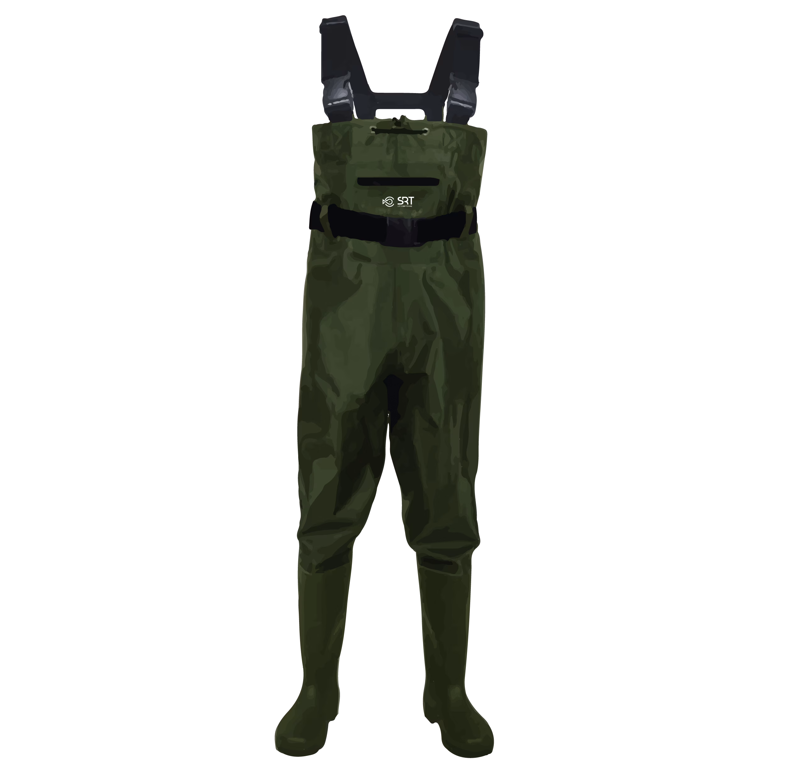 Sert Waders PVC SRT 70D. Los vadeadores para pesca deportiva Sert Waders PVC SRT 70D de PVC son muy económicos, pero están diseñados para ofrecer comodidad y protección durante sus sesiones de pesca. Su construcción robusta y su diseño funcional los convierten en los vadeadores ideales para la pesca spinning y mosca. Fabricados en PVC 70D, estos vadeadores combinan flexibilidad y resistencia, ofreciendo una excelente libertad de movimiento y protegiendo eficazmente contra la humedad y las salpicaduras de agua. Las costuras reforzadas garantizan un ajuste perfecto y aumentan la durabilidad, incluso durante un uso intensivo. Los tirantes ajustables proporcionan un soporte personalizado y cómodo, adaptándose a todas las formas del cuerpo. La suela dentada ofrece un excelente agarre en superficies resbaladizas o irregulares, garantizando una estabilidad óptima.
