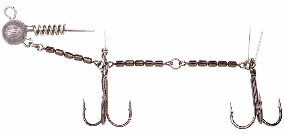 El Spro Screw In Swivel Rig es ideal para montar en sábalos, swimbaits blandos y grub y está disponible en diferentes tamaños y pesos. Con una alta resistencia a la tracción de 27 kg, es capaz de soportar grandes depredadores y roscas Pe muy gruesas. El sistema Spro Screw In Swivel Rig se monta con anzuelos triples Gamakatsu Treble 13. El Spro Screw In Swivel Rig consta de múltiples emerillones giratorios, uno o varios pasadores para su fijación y un jighead con un tornillo. Los emerillones giratorios tienen otra ventaja sobre el hilo de acero. Si el pez gira sobre su eje durante la pelea, nada puede enredarse porque el Spro Screw In Swivel Rig es capaz de evitar totalmente la torsión.