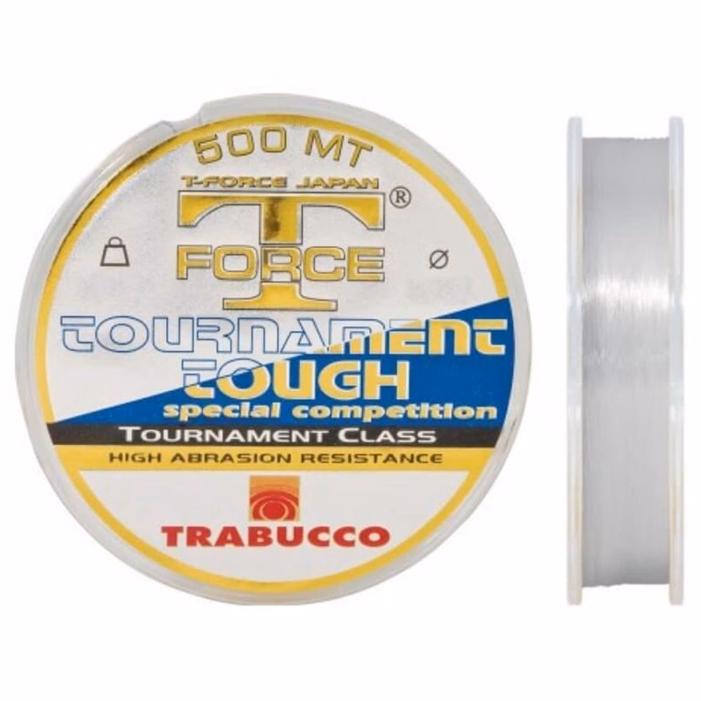 El monofilamento Trabucco T-Force Tournament Tough, es un sedal de nylon en bobinas de 500 metros, con una gran relación calidad-precio. Famoso desde hace mucho tiempo, el sedal Trabucco T-Force se bobina en paralelo, para eliminar totalmente la torsión en la fase de producción, lo que se traduce en una mayor fluidez durante las fases de lanzado. El nylon de pesca Trabucco Tournament Tough tiene la particularidad de ser extremadamente suave y con una capacidad de retención del nudo muy elevada. Adecuado para la pesca con caña fija, roubasienne, pero también con carrete para lanzados a larga istancia. Color neutro, dicroico transparente.