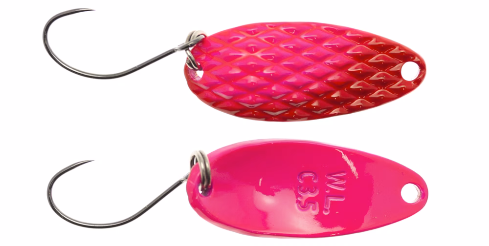 Cuchara Waterland Deep Diamond. Olas de juego de área de truchas diseñadas por Hajime y producidas en Japón. Su principal característica es la de tener un perfil 3D totalmente mecanizado que crea deslumbramientos y un efecto visual completamente atípico, dispersando la luz en algunos momentos de su acción de pesca y amortiguándola en otros. Las dimensiones medianas de esta cuchara y el perfil bastante ancho la hacen ideal para la pesca de superficie y media agua. Montan anzuelos simples sin púas Cultiva.