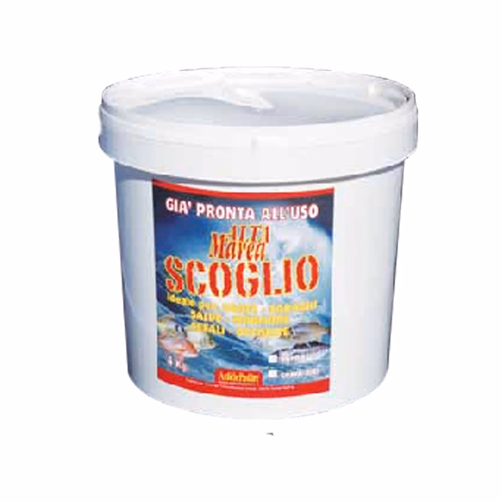 Antiche Pasture Alta Marea Scoglio, amorce d'eau salée prête à l'emploi riche en sardines, moules et bibi lyophilisés, idéale pour la pêche en port ou en falaise. Extrêmement pratique dans son utilisation, il suffit de former des boules plus ou moins pressées selon la profondeur du lieu de pêche. Une fois la quantité désirée utilisée, il suffit de fermer le seau pour le réutiliser la prochaine fois. Pour la pêche en mer de tous les poissons.