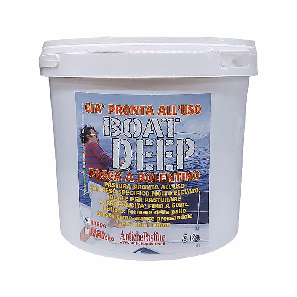 Amorce pour la pêche en eau salée Boat Deep Antiche Pasture, La difficulté d'amorçage à des profondeurs considérables a toujours été un gros problème, c'est pourquoi nous avons créé BOAT DEEP, une amorce concentrée avec une remarquable coulabilité.