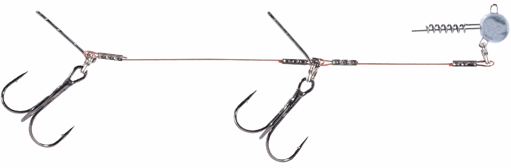 Système Balzer Shirasu Gummifisch. Montage pour appâts souples équipé d'une tête de vis, d'un plomb et d'un terminal anti-cisaillement avec double ancre, excellent pour l'amorçage des shad, grub et autres appâts souples pour le sandre, la perche, le brochet et le silure.