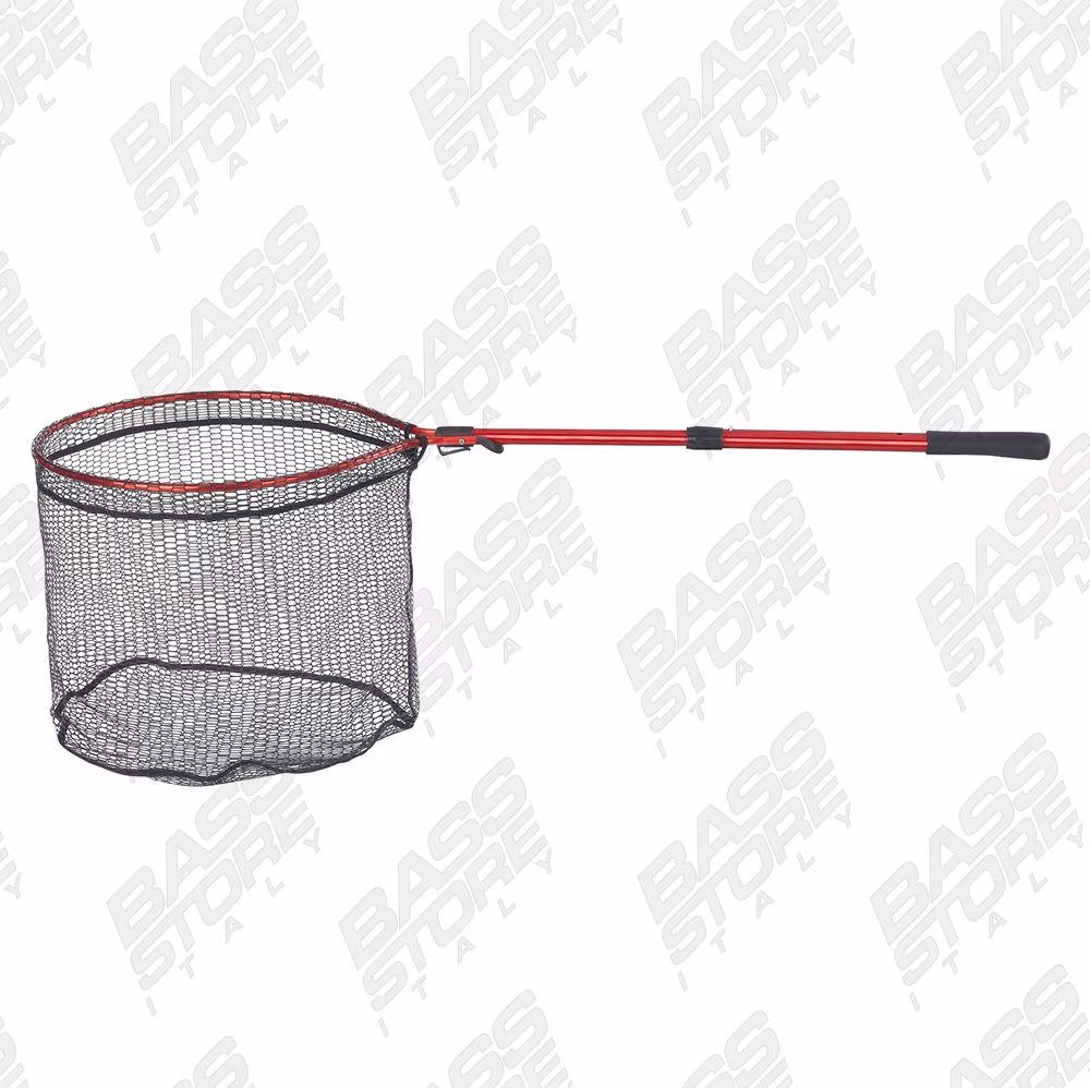 L'épuisette Shirasu de Balzer. L'épuisette idéale pour tous les pêcheurs mobiles. L'épuisette peut être contrôlée d'une seule main pendant le jeu. Pendant la pêche, elle est fixée à l'aide de l'attache de ceinture rabattue sur la ceinture. Pour sortir l'épuisette de la ceinture pendant le jeu, il suffit d'un simple mouvement de la main pour déplier le haut de l'épuisette. En appuyant sur un bouton, l'épuisette se déploie automatiquement dans toute sa longueur grâce à un mécanisme à ressort. Avec un filet caoutchouté ! Disponible en deux tailles.