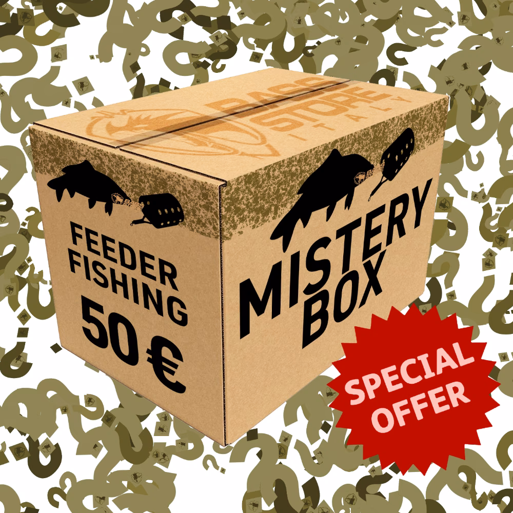 La BASSSTOREITALY feeder Mystery Box comprend des leurres et des accessoires surprises pour la pêche au feeder d'une valeur de 80 euros mais ne vous coûte que 50 euros Que contient la boîte ? OUVREZ ET DÉCOUVREZ