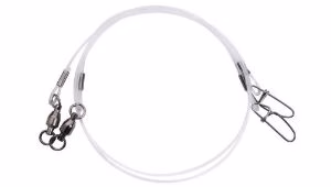 Cavetti in fluorocarbon. Questi terminali in fluorocarbon da spinning sono consigliati per luccio, siluro e pesca a spinning saltwater (per pesce serra ed altri predatori) già dotati di girella con cuscinetto a sfera crimpata e snap (moschettone a sgancio rapido).