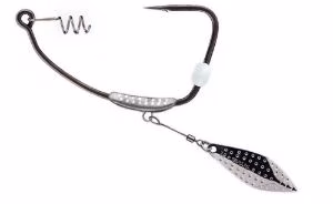 Hameçon à swimbait BKK Titan Diver. Le BKK Titan Diver est la nouvelle version améliorée du Titan, conçue pour le montage en weedless de plus gros softbaits tels que les swimbaits, les shads et les grubs. Il présente toutes les caractéristiques du Titan original - un ressort de verrouillage pour fixer le leurre en plastique, un bouchon en silicone pour le maintenir en place et le revêtement Super Slide - renforcées par l'ajout d'un plomb fixe qui permet de pêcher plus profondément dans l'eau, à la recherche de structures immergées où les poissons prédateurs peuvent s'installer. Le plomb est quant à lui doté d'un anneau en acier inoxydable qui permet d'y fixer une palette tournante, améliorant ainsi l'attrait de votre leurre.