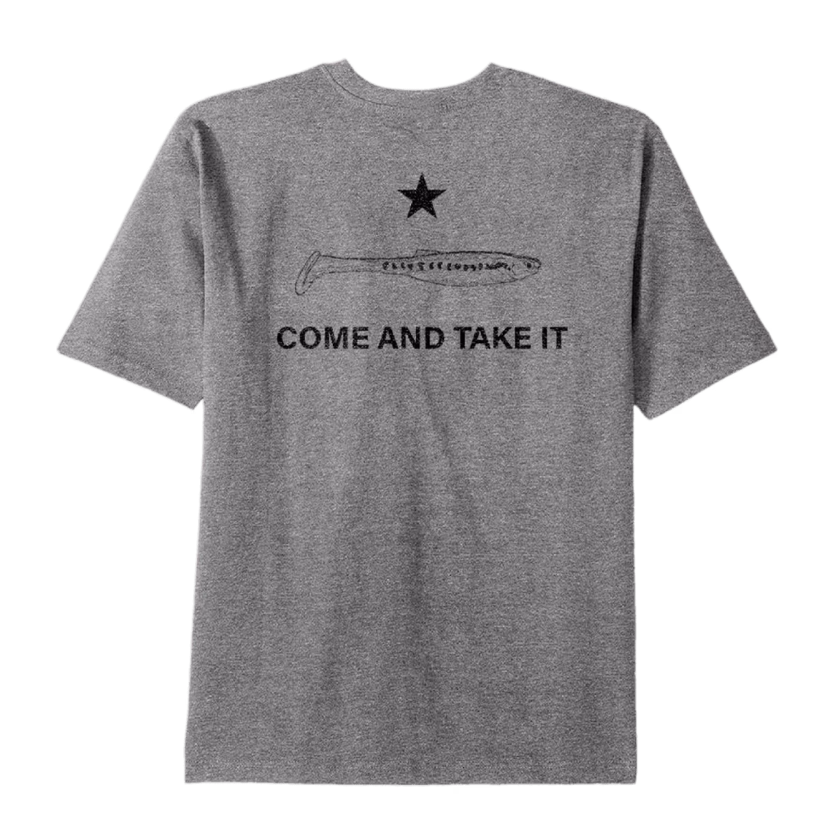 T-shirt de natation Castaic Jerky J. ''VENEZ ET PRENEZ-LE'' (= SI VOUS LE VOULEZ, VENEZ LE RÉCUPÉRER) T-shirt de pêche original de haute qualité de Castaic, la marque inventrice des swimbaits. Il présente une reproduction imprimée de l'un des appâts les plus célèbres au monde de la nage douce, le CASTAIC JERKY J SWIM associé au "LONE STAR" du Texas, siège actuel du fabricant historique nord-américain.