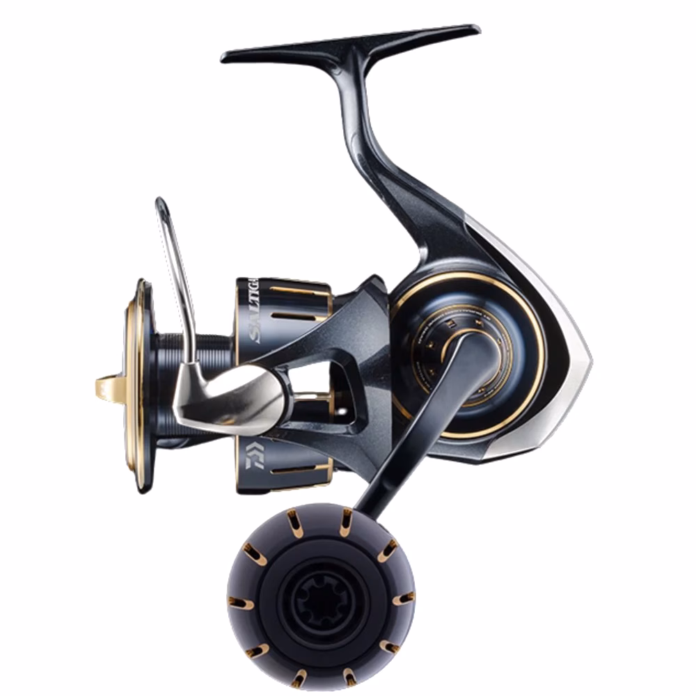 Daiwa 23 Saltiga spinning reel. The new Daiwa Saltiga G is the definitive reel for medium-heavy spinning enthusiasts at sea: entirely built in Japan, the Daiwa Saltiga G spinning reel draws on the best of Daiwa technology, to combine lightness and ease of handling power and reliability. The body, the now famous Monocoque Body, a monocoque entirely in Aluminum, joins a newly conceived rotor, also built in Aluminum according to the innovative Airdrive Design construction technology: a new