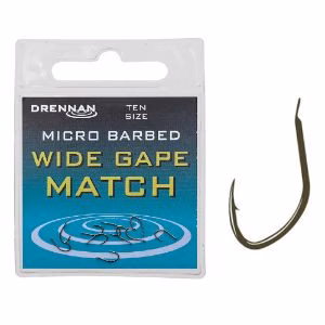 Drennan Wide Gape Match Micro Barbed hooks, designed for feeder and match fishing. Tournament grade hooks, produced with the best technologies available.