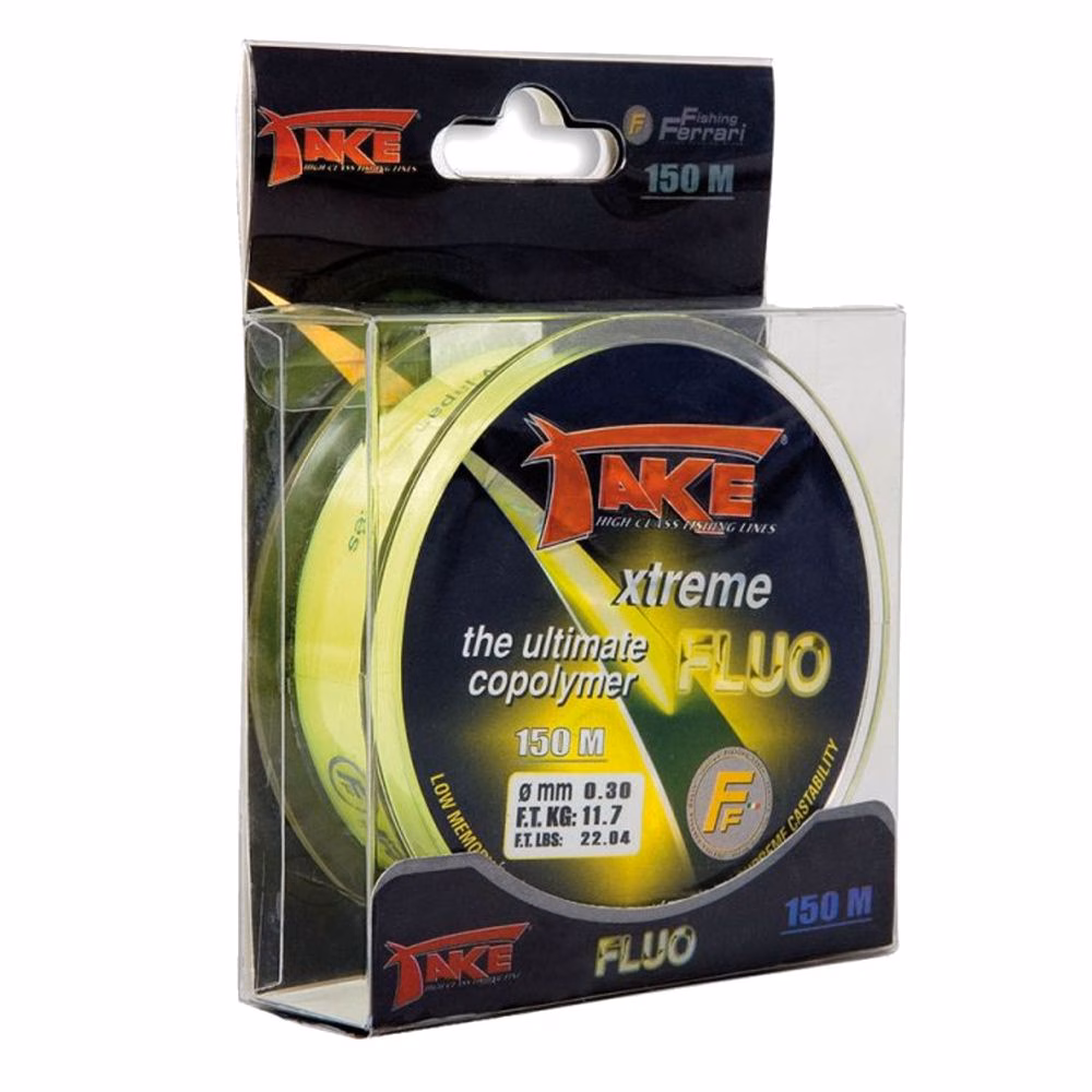 Filo da pesca Fishing Ferrari Take Extreme Fluo. Filo in nylon colorato, molto morbido ad alta scorrevolezza e con elasticità media. Grazie al controllo dell'intera fase di polimerizzazione il filo Fishing Ferrari ha ottenuto un filo polyammide uniforme, con elasticità equamente distribuita e una straordinaria resistenza all'usura e ai nodi. Il colore visibile chiaramente permettendo di vedere dove è collocata la vostra lenza risultando la scelta ottimale per ''tracciare'' il tragitto dell'esca in acqua e durante il lancio. Ottimo per differenti stili di pesca convenzionale e lurefishing.