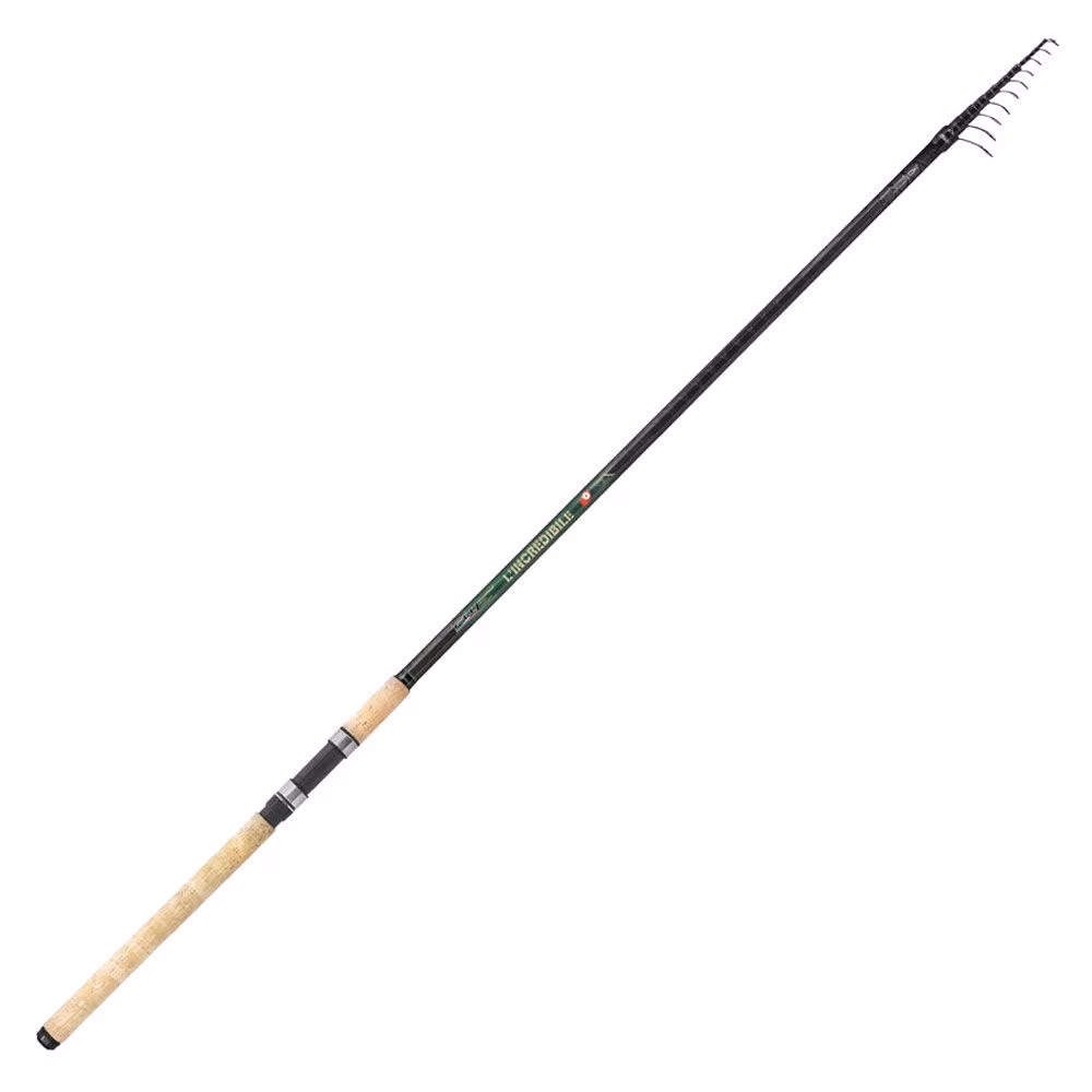 La canne INCREDIBLE Fly autrefois appelée Hulk et devenue célèbre sous ce nom est une très célèbre canne télescopique disponible en deux longueurs différentes, 4,20 m. et 4,50 mètres et dans un large éventail d'actions différentes. Fabriqué avec un blank en carbone Toray haut module, à très haute résistance, renforcé par un tressage supplémentaire et un nouvel assemblage réalisé avec des anneaux Pacific Bay Minima, qui optimisent le poids et améliorent l'équilibre global. Le manche est entièrement en liège naturel. La Fly Incredibile est une canne polyvalente, utilisable pour les pêches lourdes en mer, pour la pêche de la carpe, comme canne de fond pure, mais aussi pour la pêche à la bombarde et au sbirulino en étang, lorsque les truites sont stationnées à distance du rivage, ou même pour pêcher avec des pâtes ou du polystyrène en été.