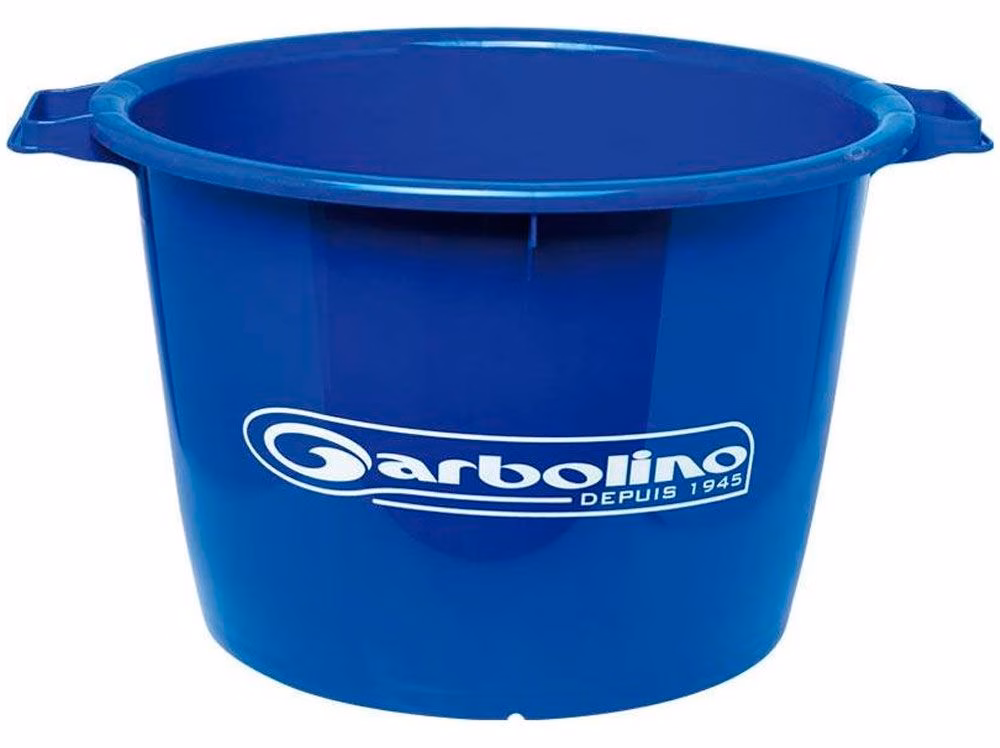 Garbolino Bassine Bleu. Seau à amorce spécifique équipé de 2 poignées, idéal pour mélanger et mouiller les appâts et les pellets pour la pêche au feeder et la pêche au coup