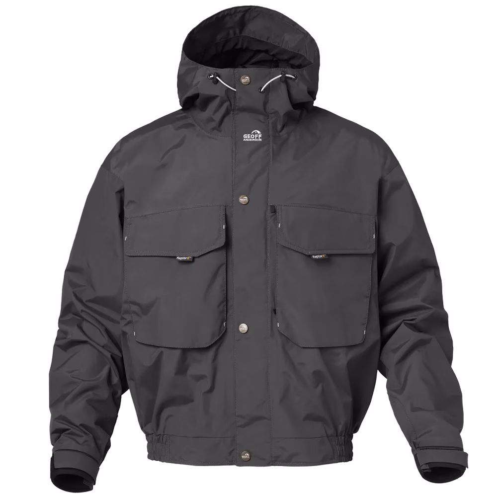 Veste de wading Geoff Anderson Raptor 6 Black Edition "wading jacket". La veste de wading Geoff Anderson Raptor 6 est imperméable/déperlante, totalement respirante et d'un niveau technique élevé en ce qui concerne les dispositifs utilisés. L'évolution de la veste Raptor a permis d'affiner ses caractéristiques. Un vêtement dans lequel l'imperméabilité, la résistance et la mobilité sont combinées dans une simplicité moderne et unique. Pour cette raison, c'est une veste très utilisée par les guides de pêche professionnels.