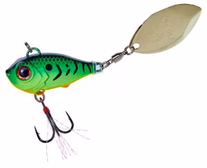 Gunki Shocker Vib 21. Cet leurre GUNKI spin tail est sans plomb. Le leurre est fabriqué à partir d'un alliage très stable qui déplace beaucoup d'eau et donne l'impression d'un gros appât. Il est équipé d'une lame tournante qui émet de puissantes vibrations qui attirent les poissons de très loin. Lorsque vous ciblez les grosses perches d'automne, faites rebondir le leurre sur le fond en mélangeant la récupération avec de courtes pauses. Chaque détail du SHOCKER VIB est soigneusement conçu. De l'œil de signalisation à la taille et aux couleurs de la palette Indiana, en passant par les proportions parfaitement équilibrées de chaque leurre. Les hameçons triples sont munis de petites plumes teaser qui servent de point de déclenchement pour toute attaque, ce qui est particulièrement important lorsque les prédateurs ramassent le leurre sur le fond. Le SHOCKER se lance bien et est facile à pêcher. Conçu à l'origine comme un leurre pour la perche, il s'est avéré tout aussi efficace pour l'aspe et le brochet.