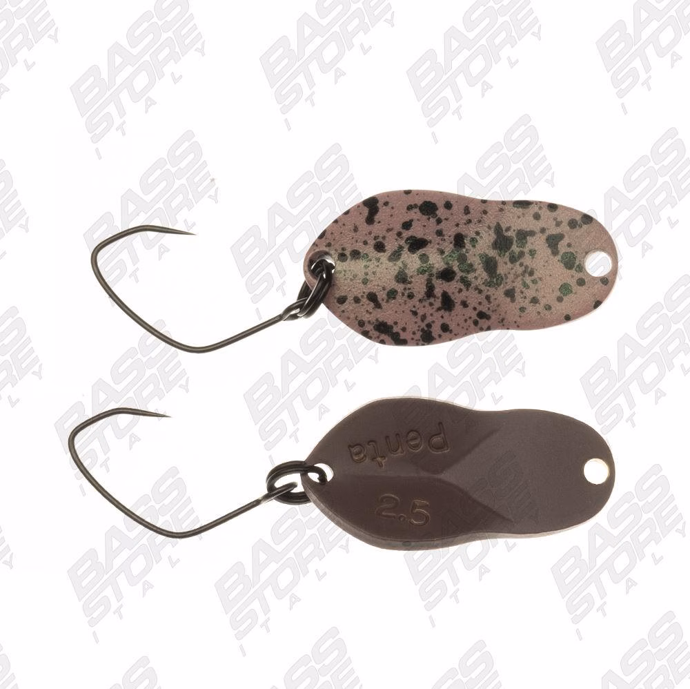 Ivyline Penta 2, cuillère japonaise pour gibier à truite avec hameçon simple sans ardillon. La truite de bassin japonaise ondule avec un seul hameçon Ivy Line.