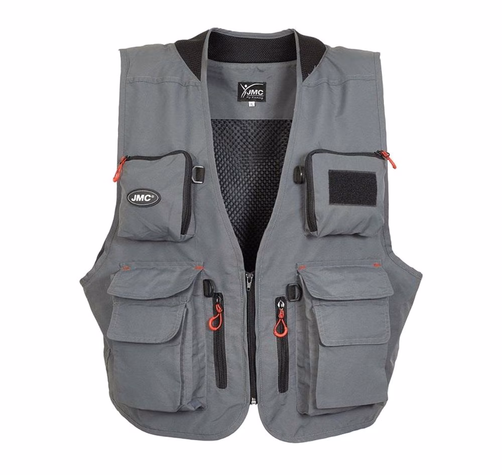 JMC Vest Tradition V2, Gilet de pêche spinning (et plus) de coupe traditionnelle, réalisé en taslon et doublé en mesh. Multiples combinaisons de poches avec fermetures zippées et velcro et panneau arrière en tissu perforé (maille) pour augmenter la ventilation dans le dos, pour une pêche confortable même lorsque les journées sont très chaudes. Grâce à sa conception courte, c'est un excellent vêtement pour la pêche à la truite à gué en rivière. Il est fabriqué en Taslon doublé en mesh et le col renforcé assure un grand confort et une parfaite répartition de la charge. - Il est équipé de : - 2 anneaux pour accrocher des accessoires - 13 poches dont 5 zippées - 1 grande poche arrière - 1 anneau d'épuisette sur le filet arrière