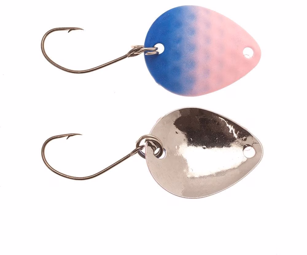 Le profil rond et très large combiné à une large dépression centrale dans le corps s'oppose au coulage, permettant une chute très lente, et surtout, permet à cette cuillère de littéralement ROULER avec des récupérations très lentes. Cette artificielle est toujours extrêmement productive lorsque les truites préfèrent les mouvements réguliers, les trajectoires linéaires et les vibrations continues, comparables à celles d'une cuillère tournante, lors de l'utilisation d'un mini émerillon combiné au "snap" classique de truite.